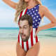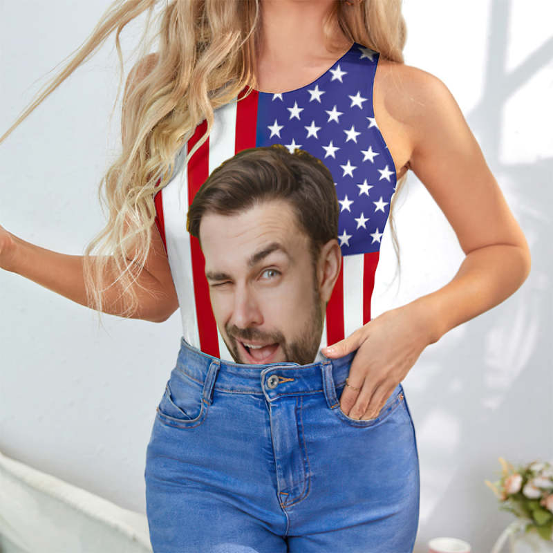 Custom Face USA Swimsuit Personalized Bathing Suit Vest Bodysuit Swimsuit for Women