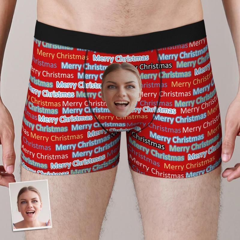 Custom Funny Face Boxers Shorts Merry Christmas Personalised Photo Underwear Christmas Gift for Men
