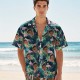 Father's Day Gifts Custom Hawaiian Shirts Personalized Photo Aloha Shirts for Him Leaves and Flamingo