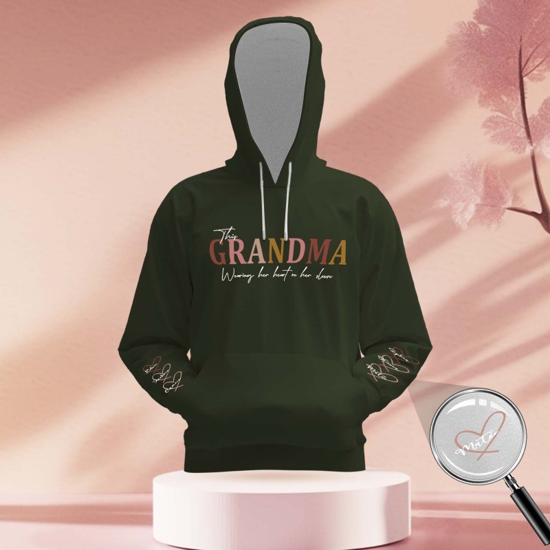 Custom Name Hoodie Personalized Hoodies Wear Heart On Sleeve Hoodie Mother's Day Gift
