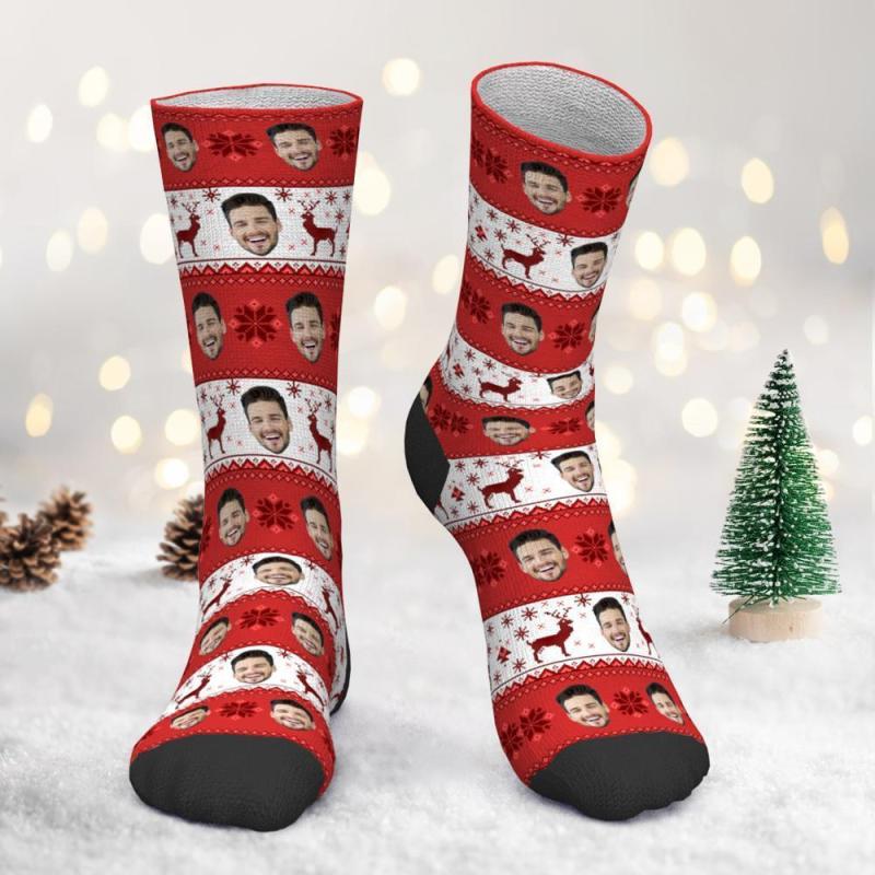 Custom Photo Socks Christmas Socks Christmas Face socks over Nordic Pattern