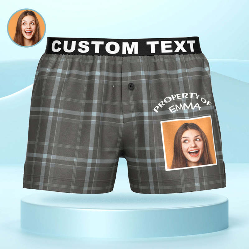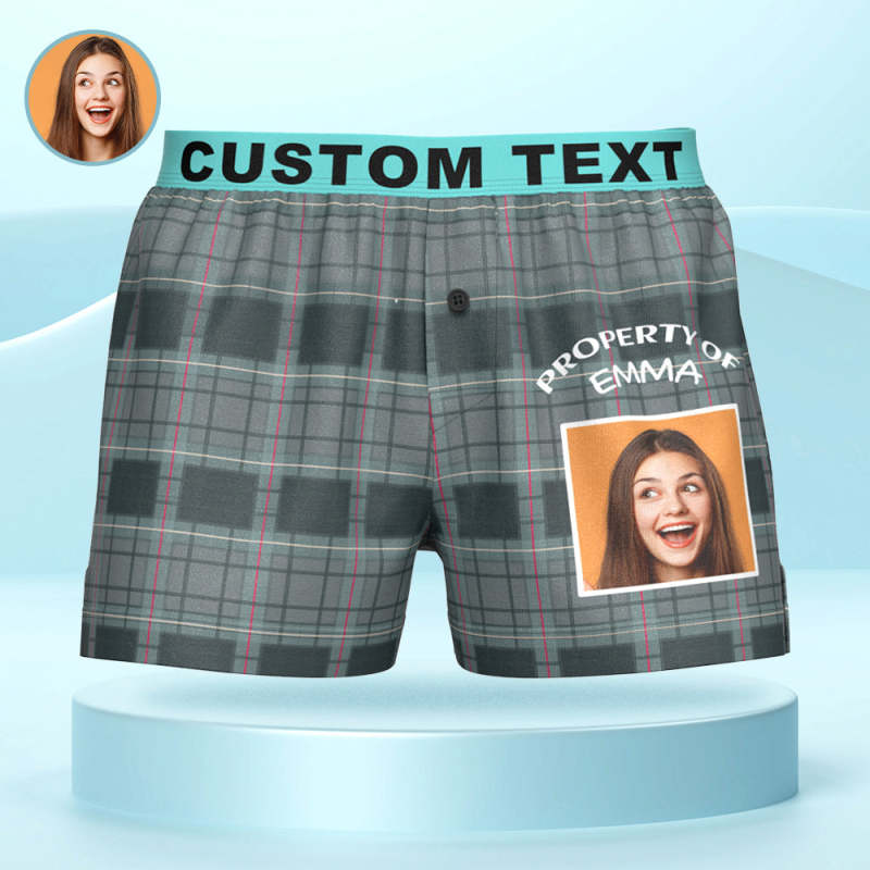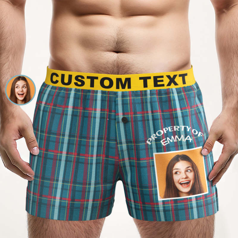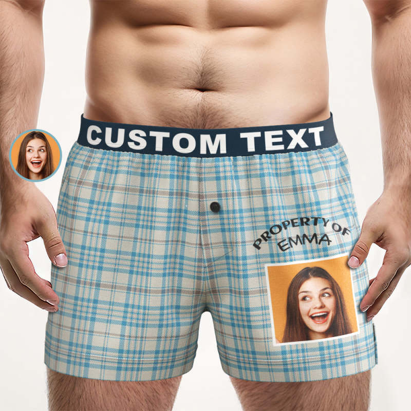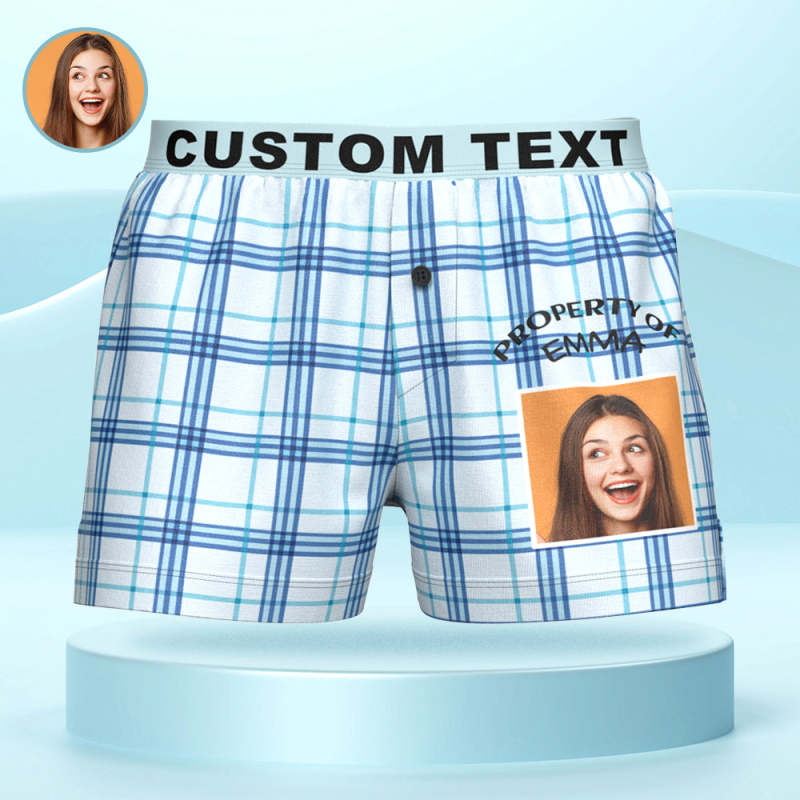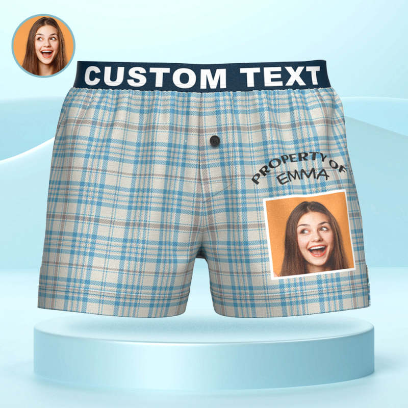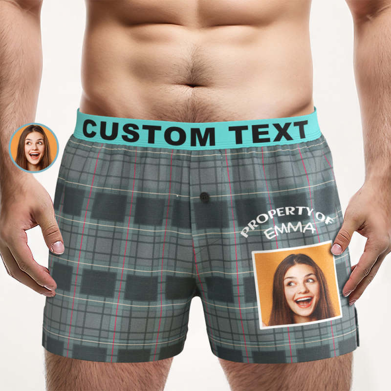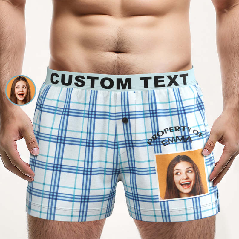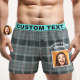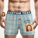 Custom Photo Striped Plaid Patterned Boxer Shorts Personalized Waistband Casual Underwear for Him