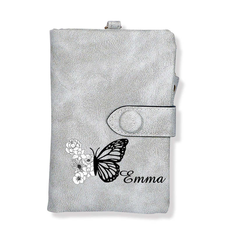 Custom Tri-Fold Butterfly Birth Flower Leather Wallet with Coin Holder Personalized Mother's Day Gift for Woman