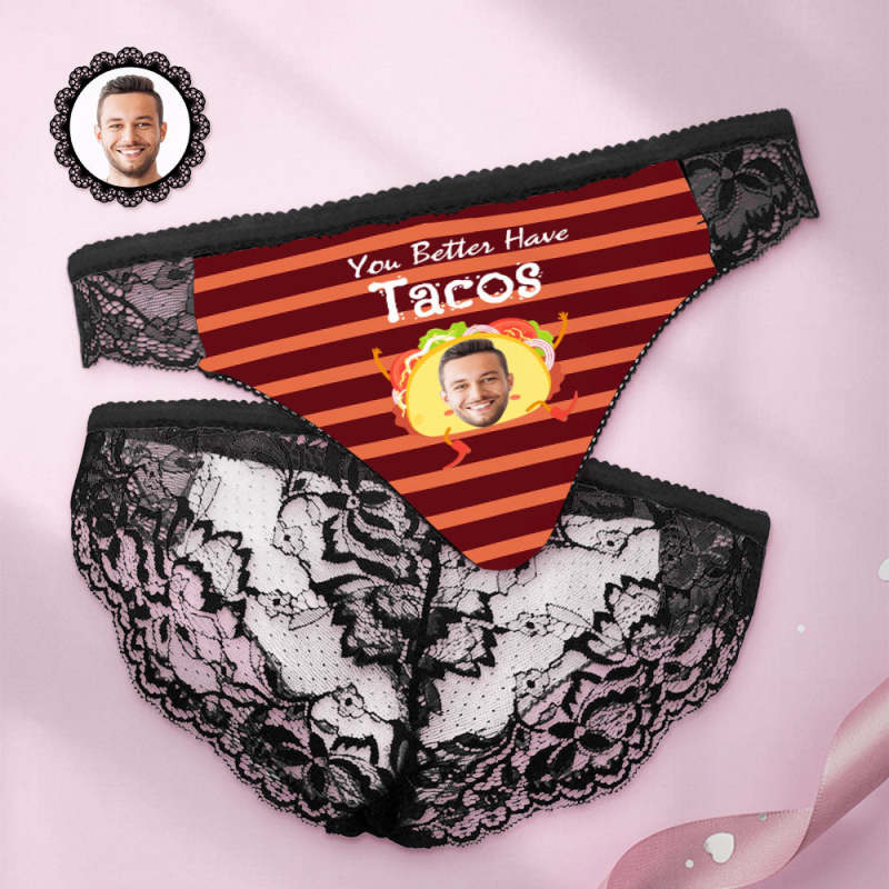 Custom Women Lace Panty Face Sexy Panties - You Better Have Tacos