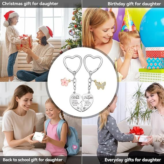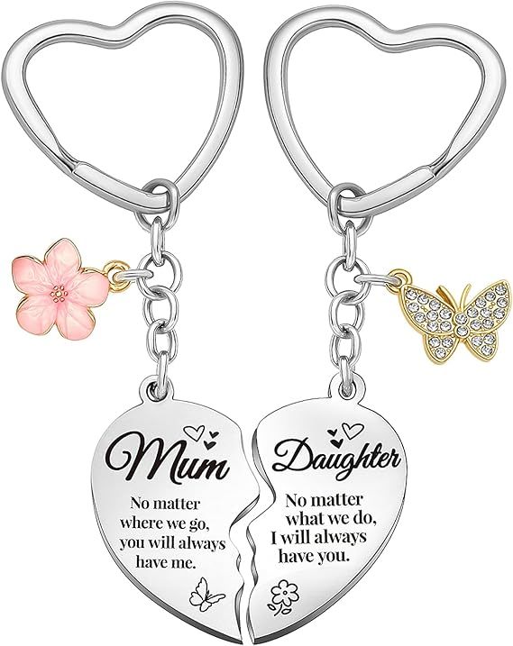Gifts for Mum & Daughter - Heart Matching Keyring Keychains - Perfect for Mum Birthday, Mother's Day, Christmas Gifts for Women