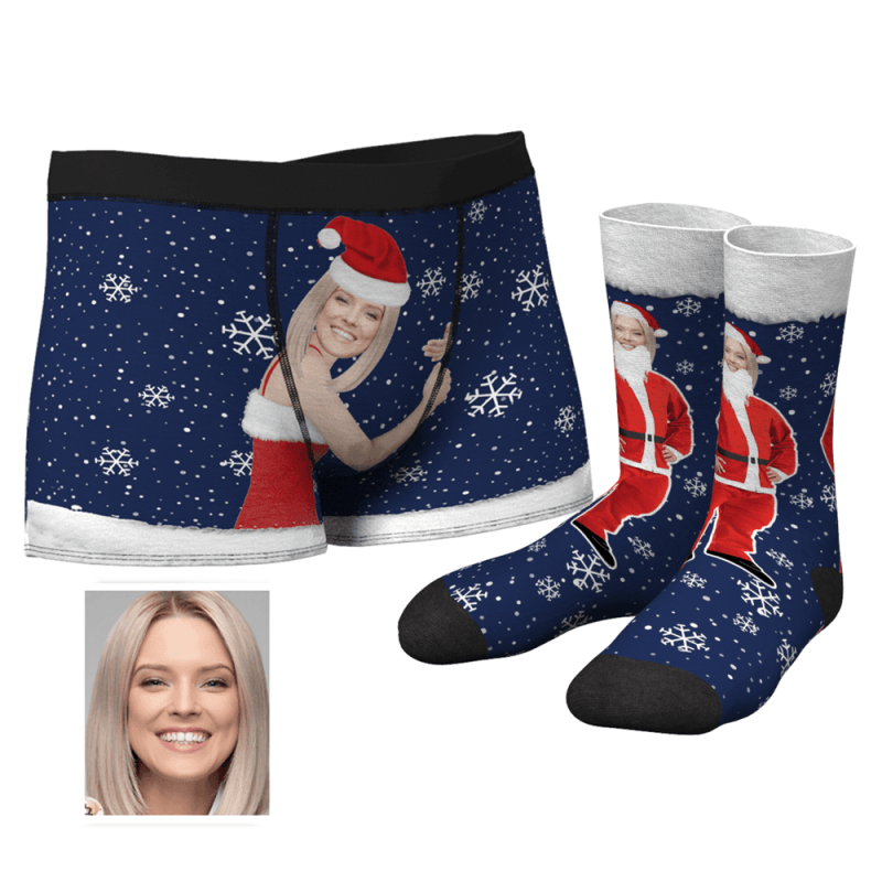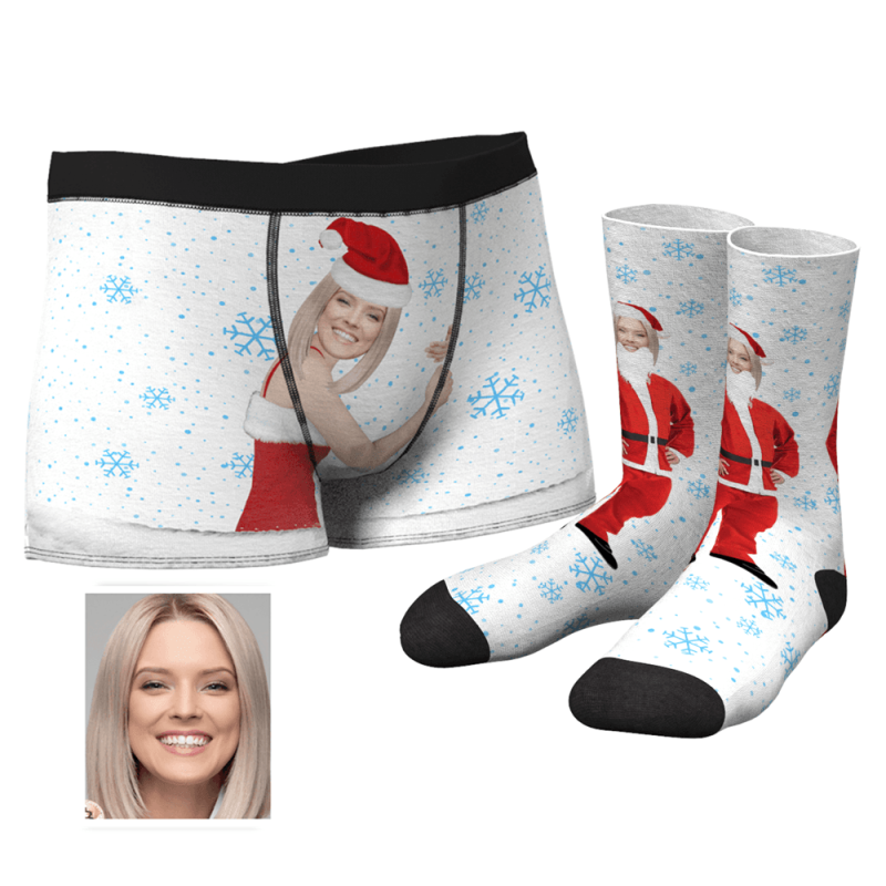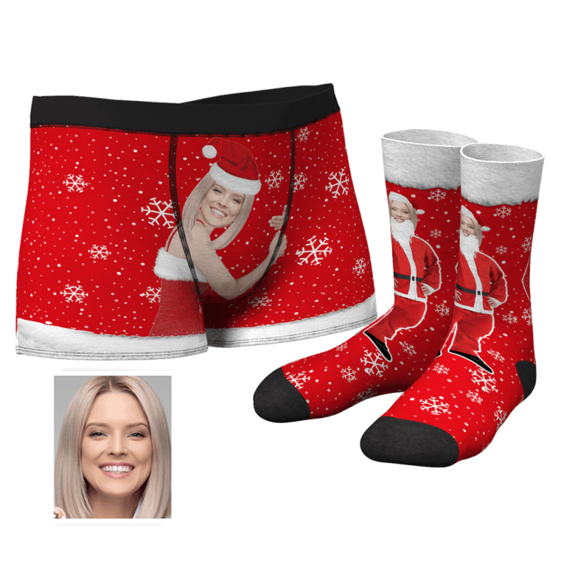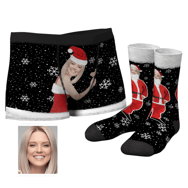 Men's Christmas Face on Body Boxers And Crew Socks Set