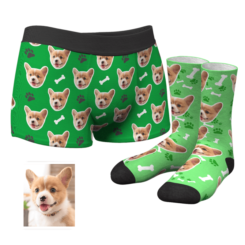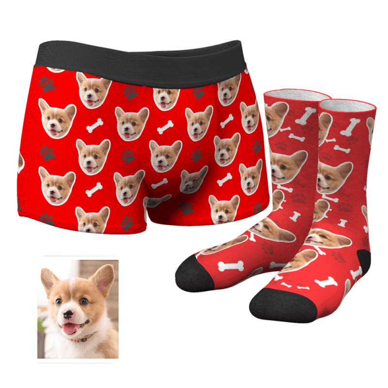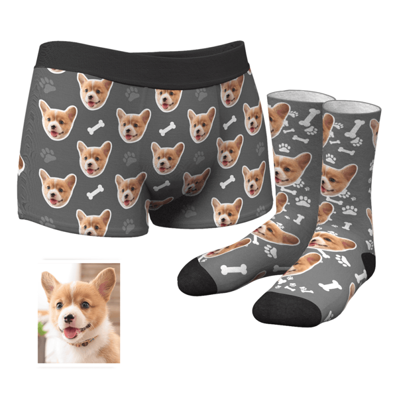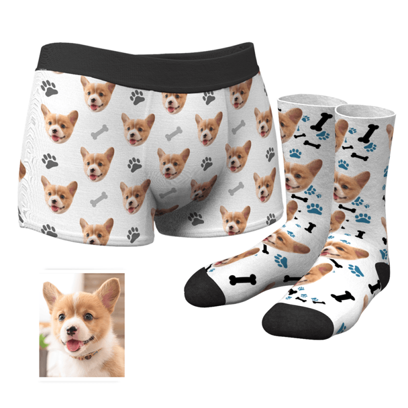Men's Custom Dog Boxer Shorts And Crew Socks Set