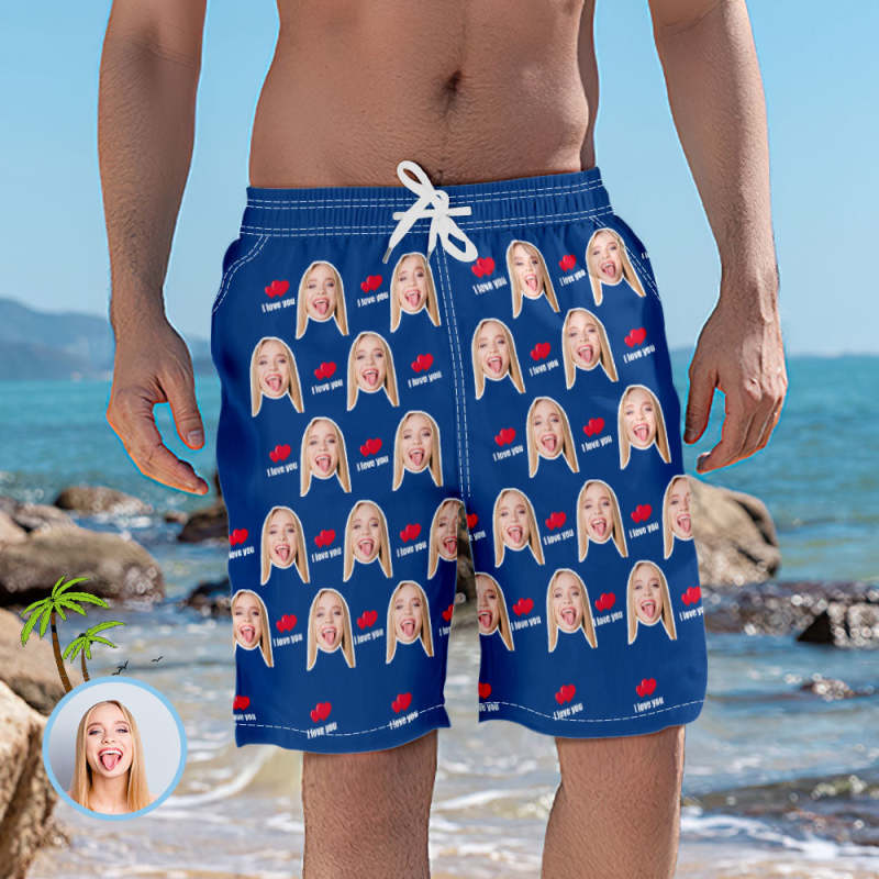 Men's Custom Face Elastic Beach Short Pants - I Love You