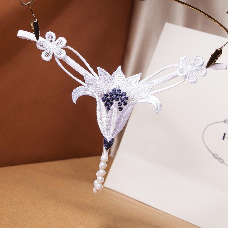 Pearl Thong Underwear - Low Rise Erotic Temptation Panty Flower Beading One Size Panties
