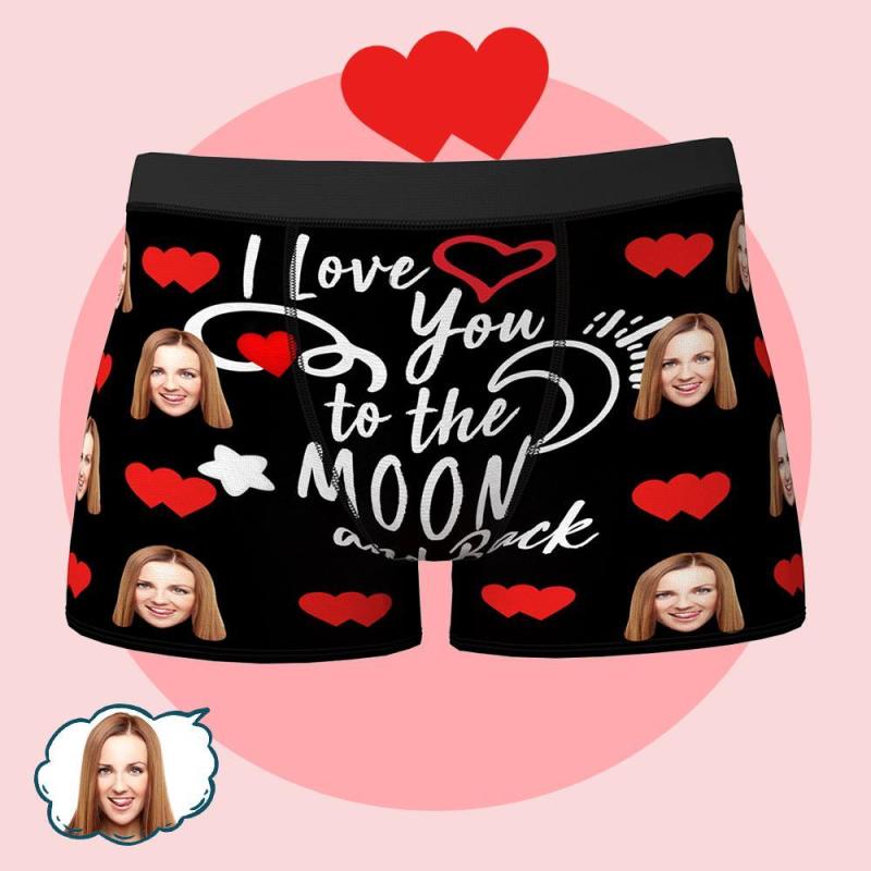 Personalize Face Boxer LOVE YOU TO THE MOON AND BACK Anniversary Valentine's Gifts for Him