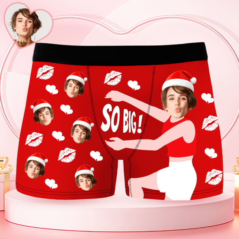 Personalized Face Boxer Briefs, Funny Photo Underwear, Christmas Gift for Men