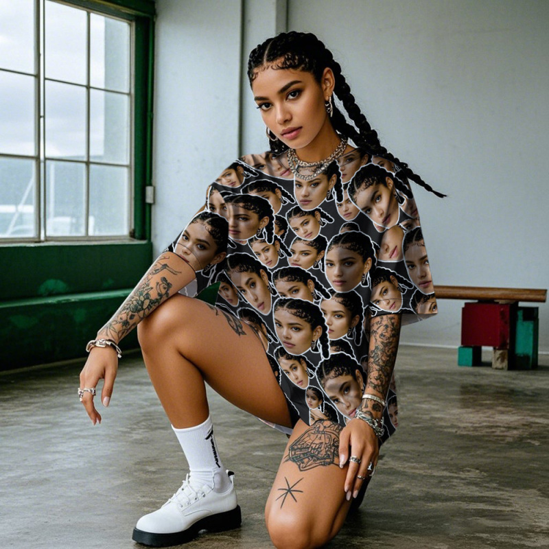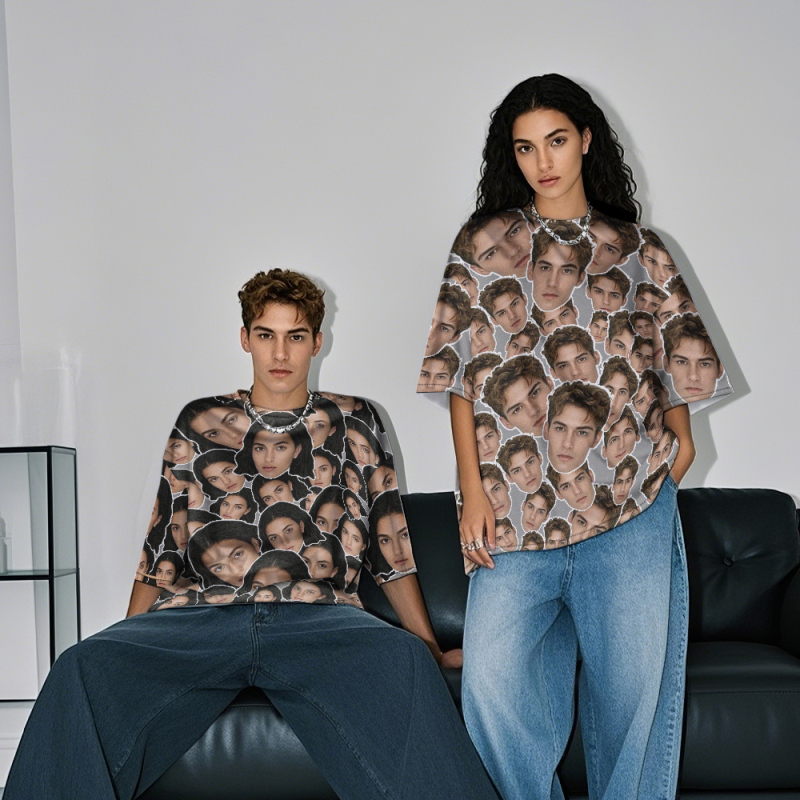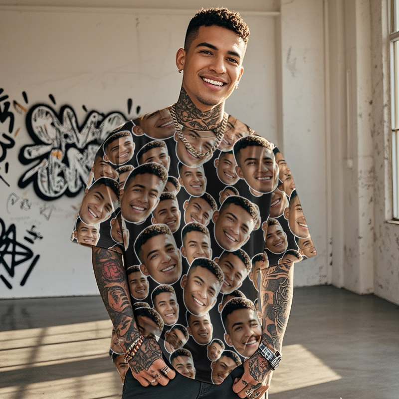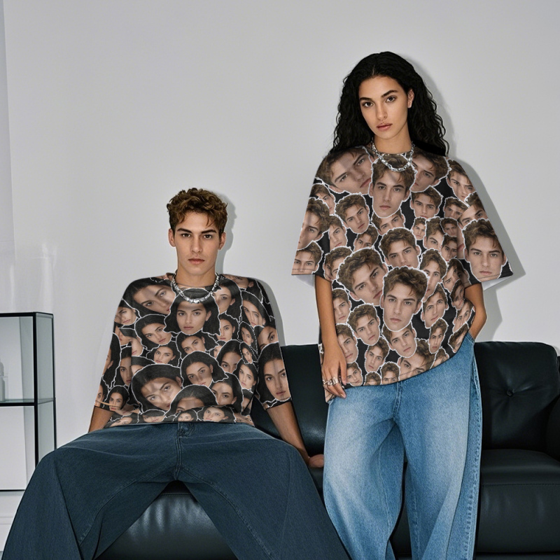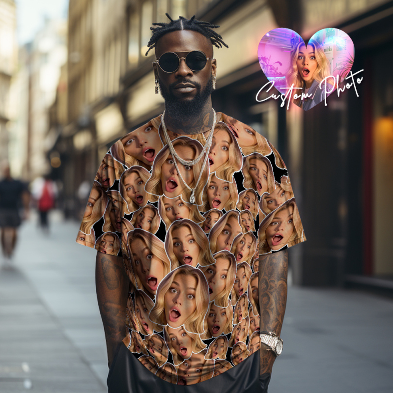 Personalized Mash Face Photo Vintage T-shirts Valentine's Day Theme Black T-shirt for Lover