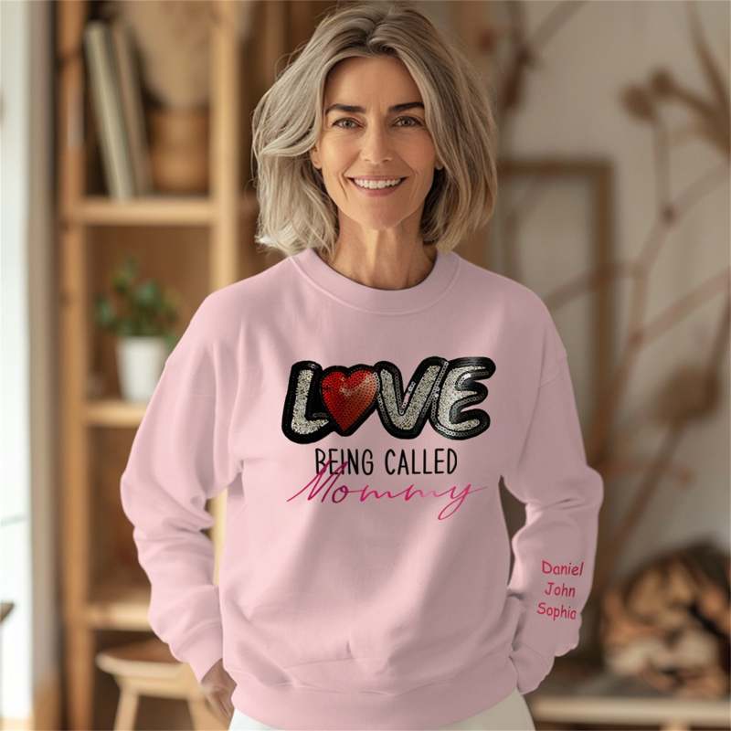 Personalized Names Sweatshirt Custom Sweatshirt with LOVE Sequins Mother's Day Gift