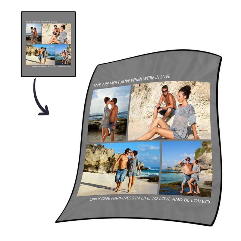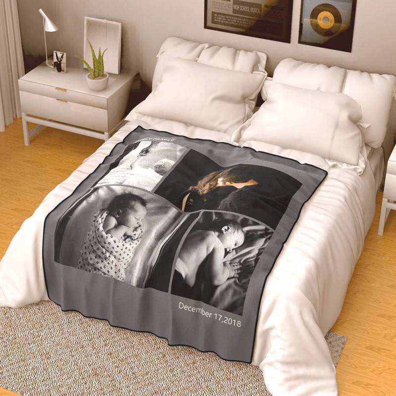 Personalised Photo Blanket Fleece with Text - 4 Photos