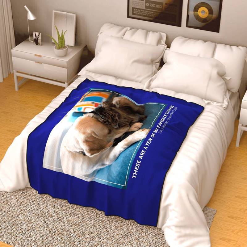 Photo Fleece Blanket with Text - Love Family