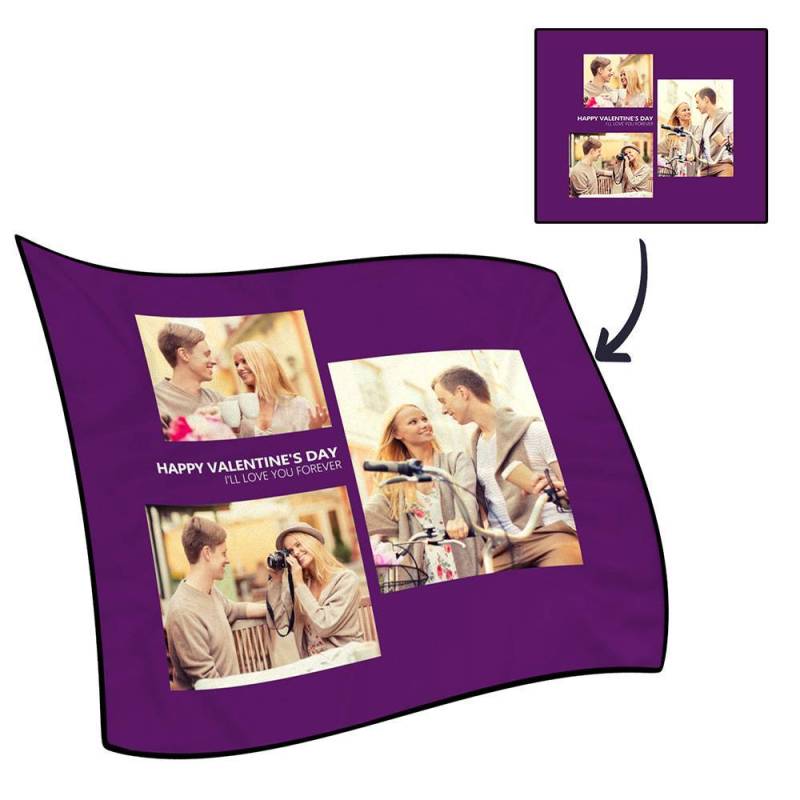 Personalised Famliy Photo Fleece Blanket with Text - 3 Photos