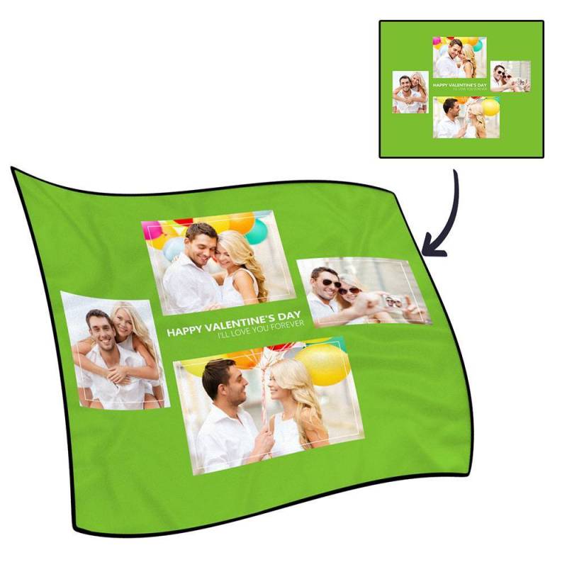 Personalised Famliy Photo Fleece Blanket with Text - 4 Photos