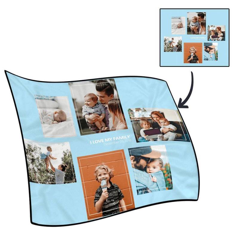 Personalised Famliy Photo Fleece Blanket with Text - 6 Photos