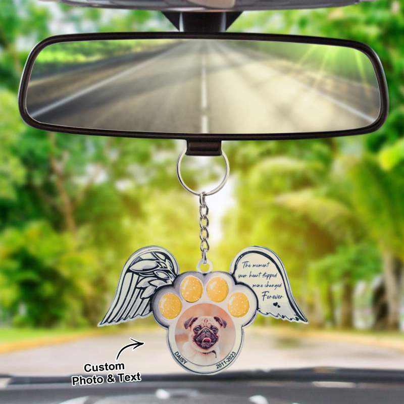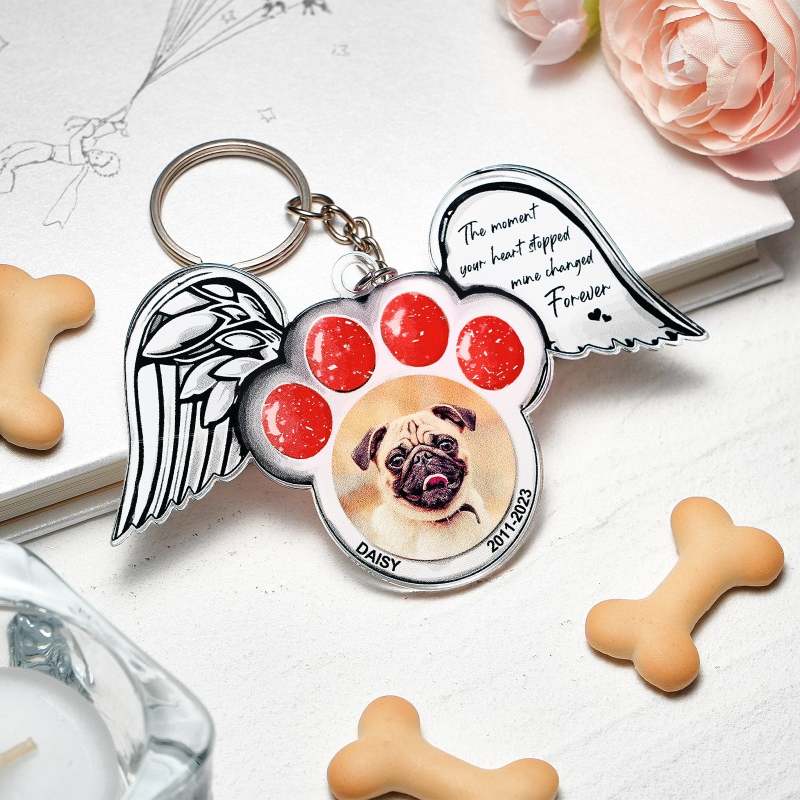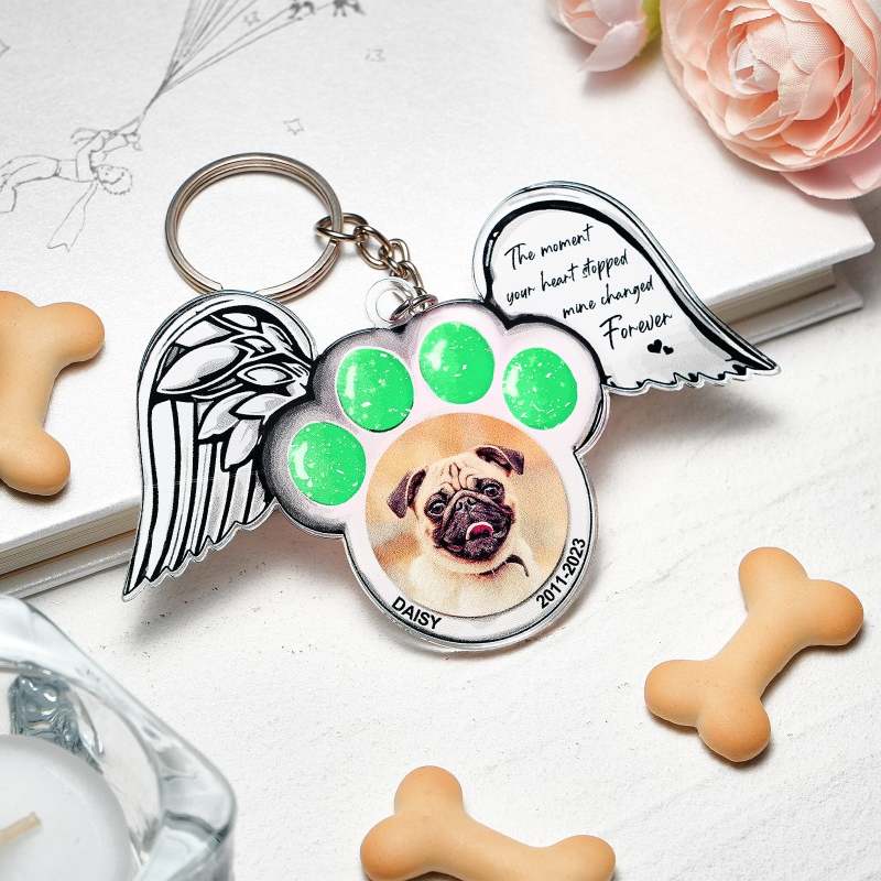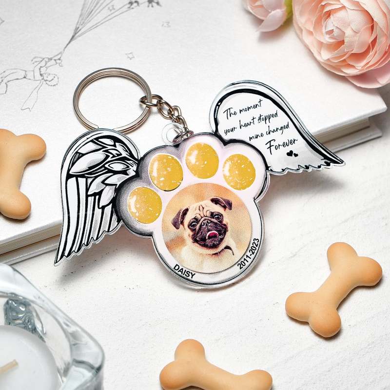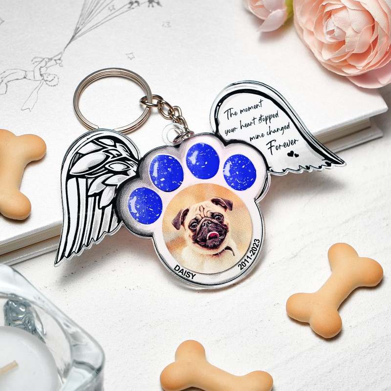 This acrylic pendant can be customized with a pet picture and short text, which is very suitable for commemorating and remembering your pet.
