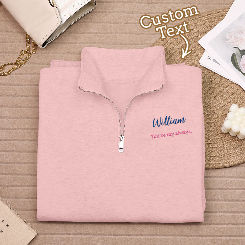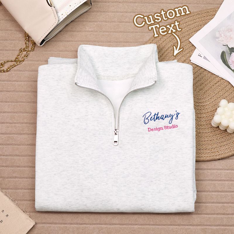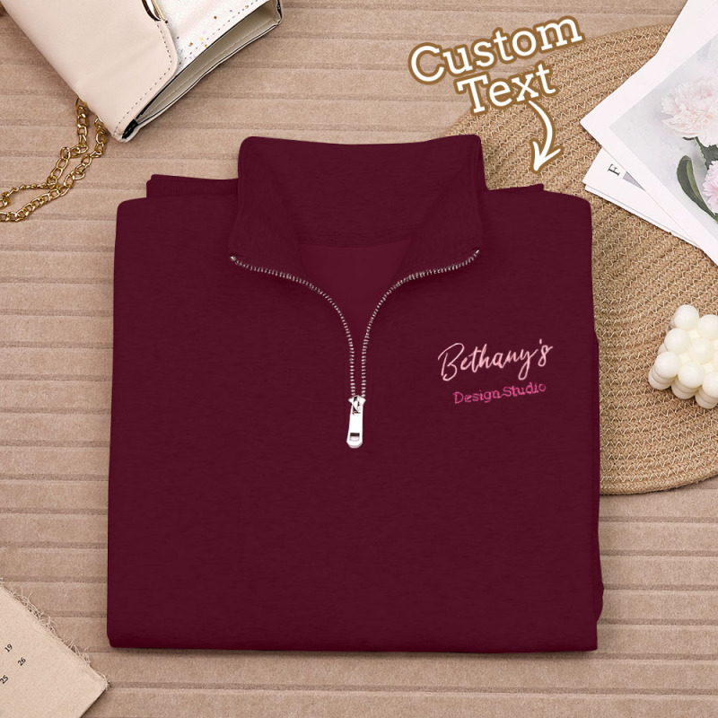 Personalized Text Quarter Zip Sweatshirt, Custom Text Embroidered Quarter Zip, Personalized Sweatshirt, Custom Sweatshirt, Gifts for Her