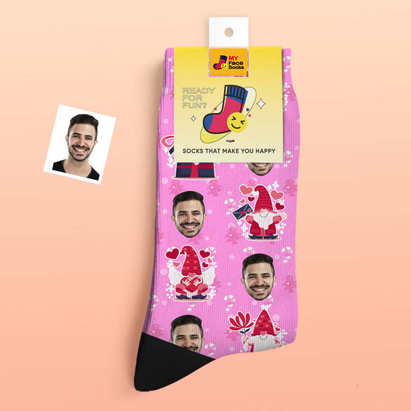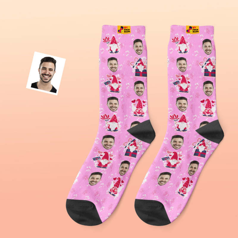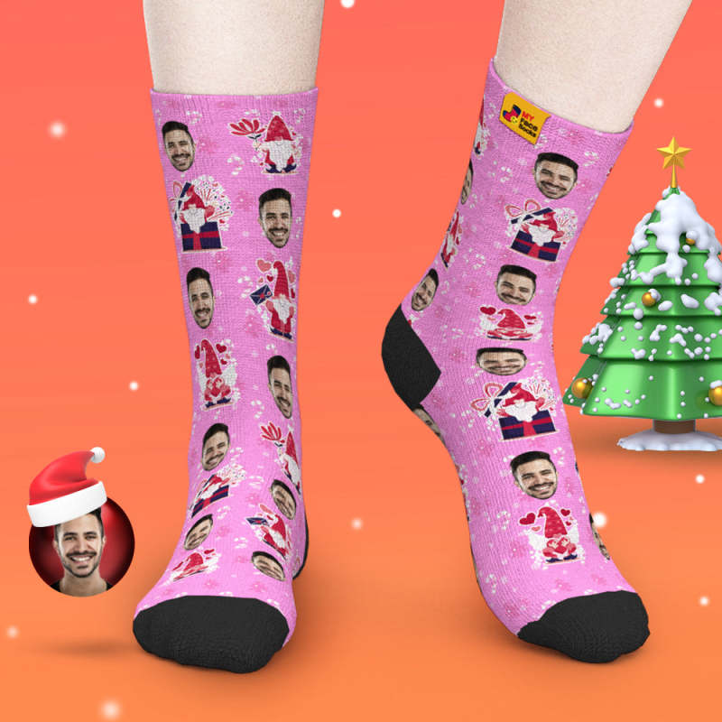 Pink Christmas Custom Face Socks Add Pictures and Name