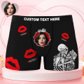 Valentine's Day Gifts Custom Face Men's Underwear Skeleton Goth Couple Style Boxer Briefs Birthday Gifts for Husband, Waistband Text Boxers