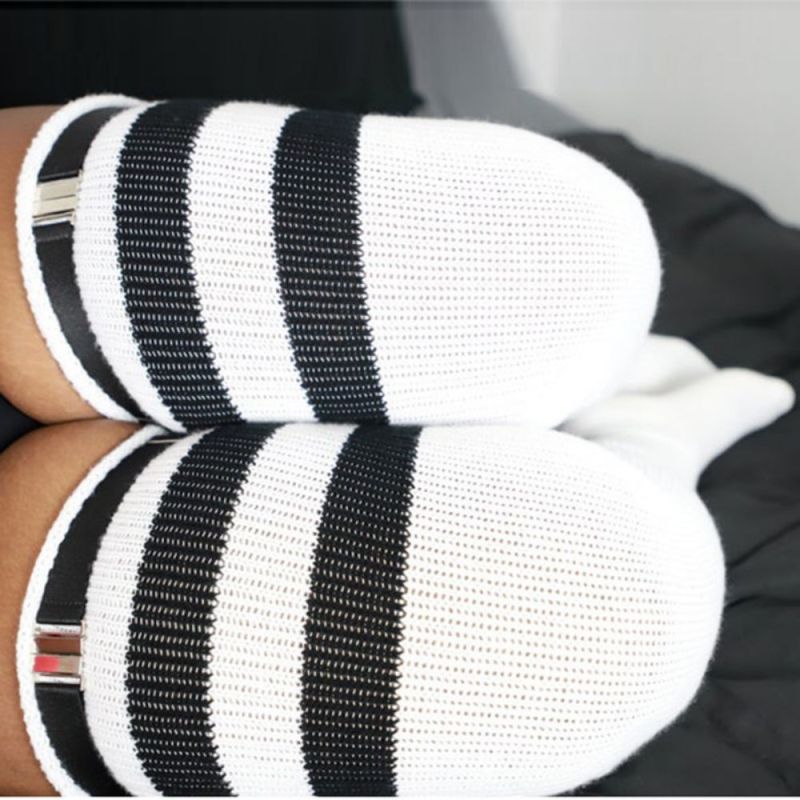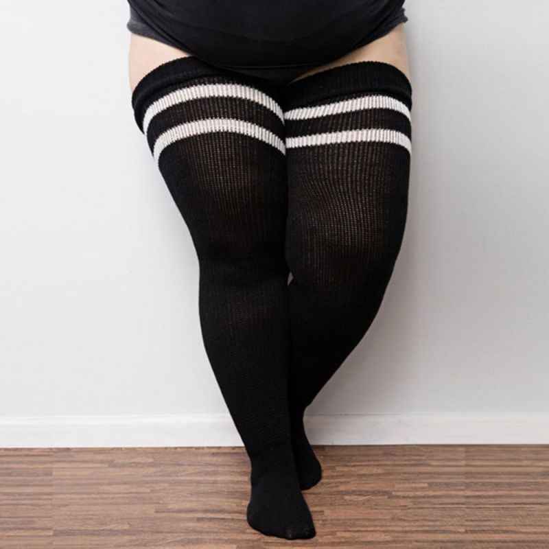 Women Winter Leg Warmers Large Size Three Bars Striped Fashion Long Tube Over Knee Pile Socks