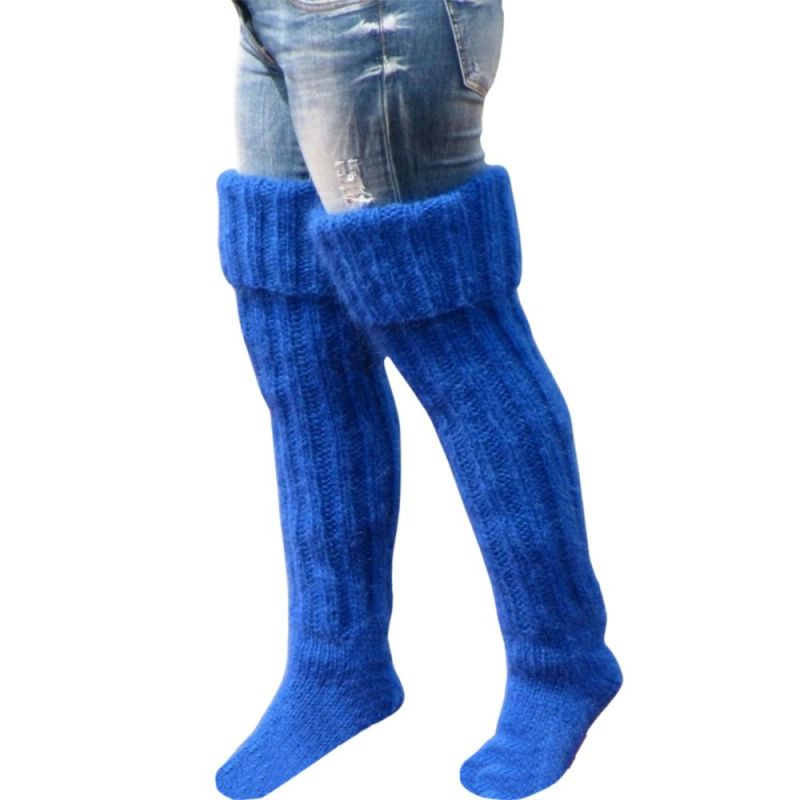 Womens Solid Color Knitted Wool Socks Over The Knee